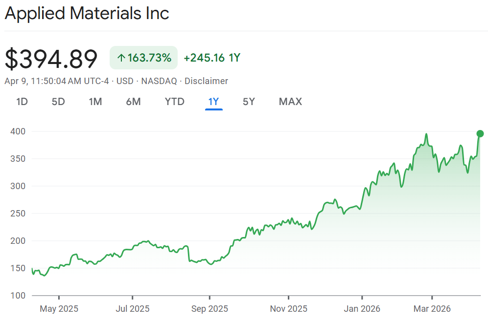 AMAT is trading around the high-$390s, and the move after this week’s launch tells you something useful: investors are increasingly willing to pay up for semiconductor names that sit closer to the technical choke points of the AI buildout.