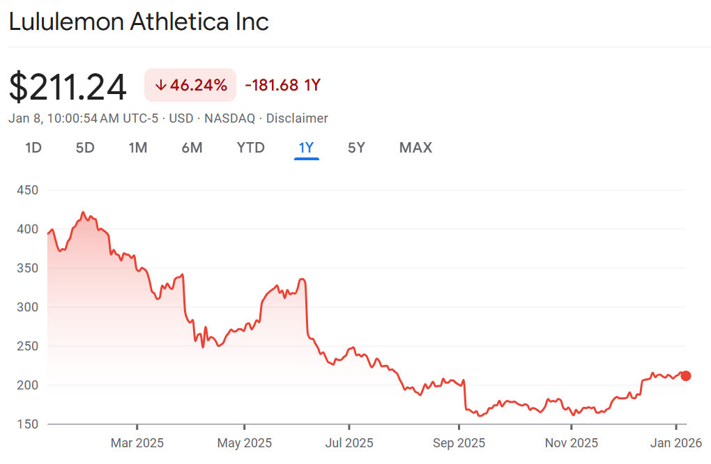 That’s the Lululemon experience since January 2024. Not a clean crash. A slow, grinding bleed that makes a premium brand feel uninvestable. And the market’s favorite conclusion right now is lazy: “LULU is broken.”