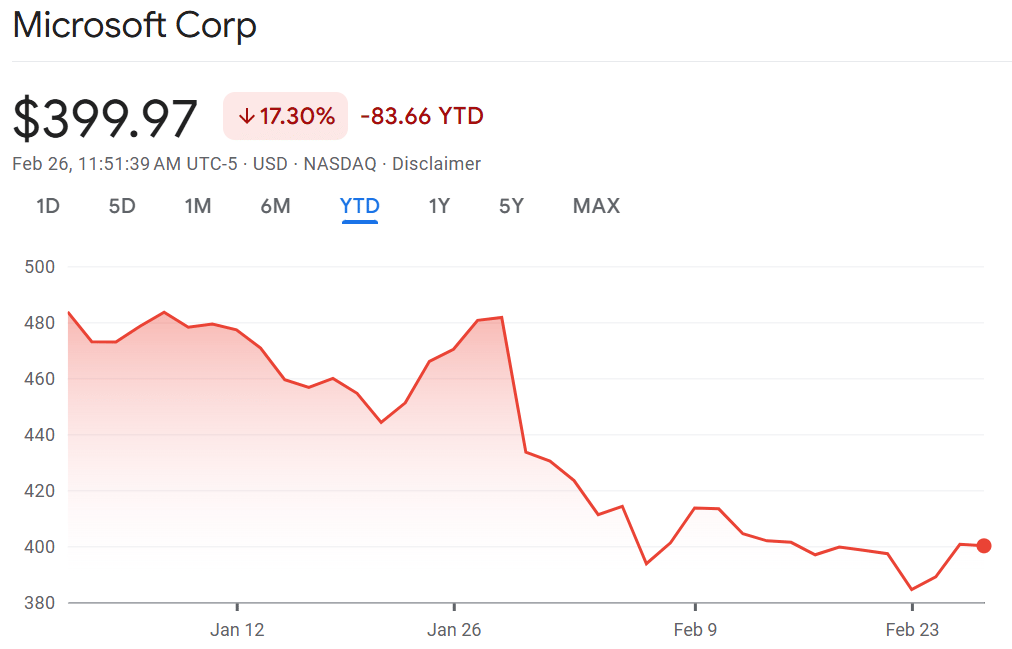 I’m not trying to catch Microsoft at the exact bottom. I’m trying to avoid confusing a falling stock with a “cheap” stock. Those are not the same thing.
